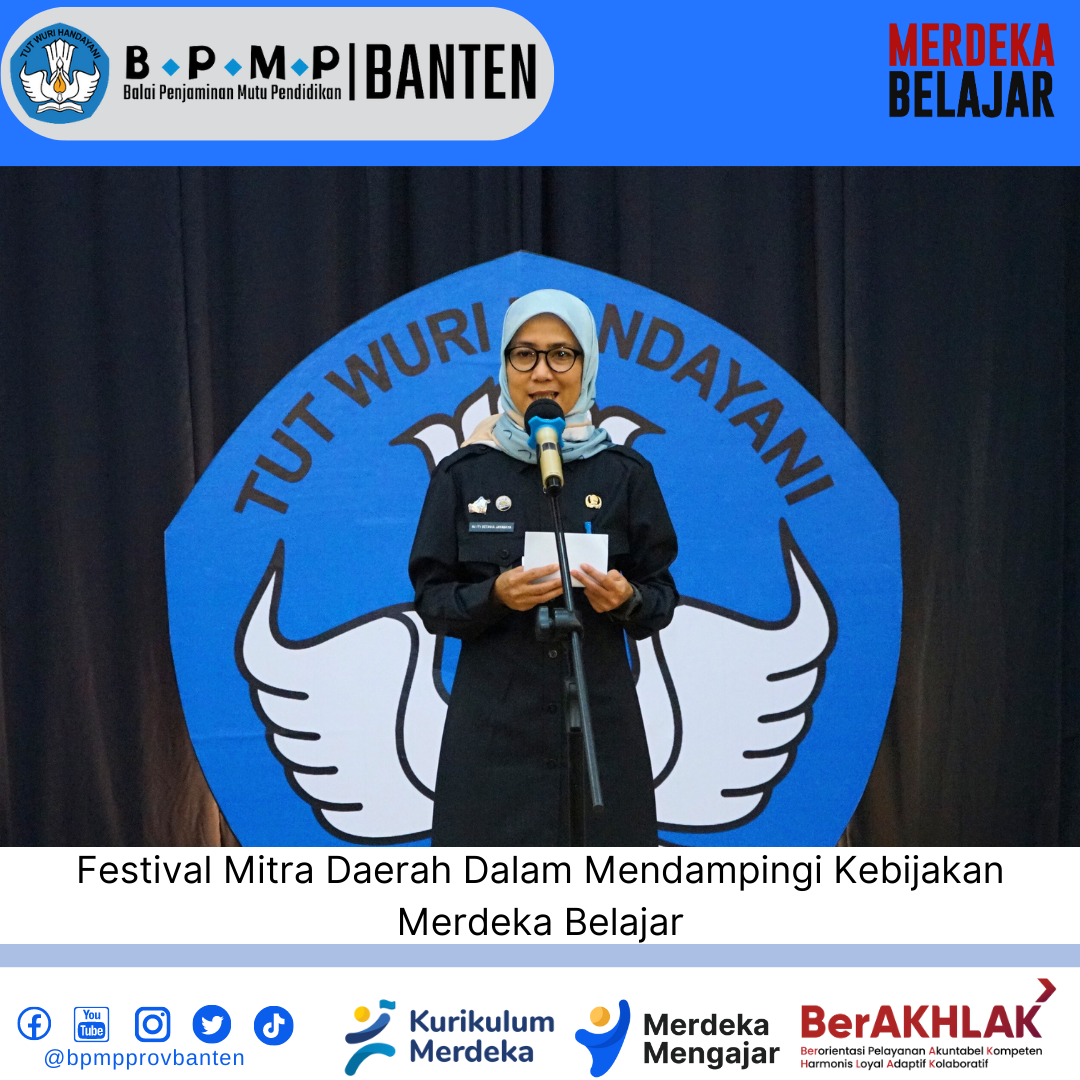 Lebak, 21 Juni 2023 — Sebagai upaya mempermudah satuan pendidikan dalam mengimplementasikan kebijakan Merdeka Belajar, Kementerian Pendidikan, Kebudayaan, Riset, dan Teknologi (Kemendikbudristek) melalui Balai Penjaminan Mutu Pendidikan (BPMP) Provinsi Banten menyelenggarakan Festival Mitra Daerah dalam Pendampingan Kebijakan Merdeka Belajar, pada 21 s.d. 23 Juni 2023. Mitra daerah yang terlibat pada festival ini adalah Yayasan Bhakti Barito, Taman Mini Indonesia Indah, Museum Batik Indonesia, Museum Listrik dan Energi Baru, dan Museum Penerangan Republik Indonesia.