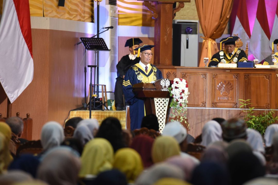 Dalam kesempatan itu, Mendikdasmen juga mengapresiasi kontribusi UNNES sebagai lembaga yang telah melahirkan guru-guru hebat dan berkualitas. “Kami sangat berharap UNNES dapat terus mendidik para guru sebagai tidak hanya agent of learning tetapi juga agent of civilization. Guru tidak hanya menjadi agen pembelajaran, tetapi juga agen dalam membangun peradaban,” tuturnya.