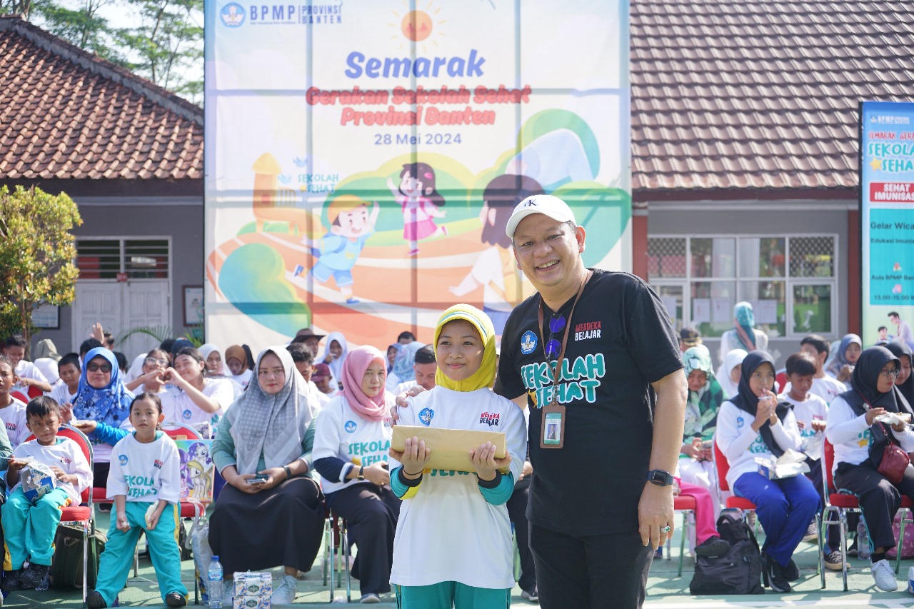 Rangkasbitung, Banten – Dengan mengusung tema “Bergerak Bersama Untuk Anak Indonesia Sehat, Kuat, Cerdas, dan Berkarakter” BPMP Provinsi Banten menggelar event Semarak Gerakan Sekolah Sehat. Kegiatan ini digelar sekaligus untuk mempromosikan Gerakan Sekolah Sehat berkelanjutan di satuan pendidikan dalam rangka mewujudkan peserta didik yang sehat, kuat, cerdas, dan berkarakter.